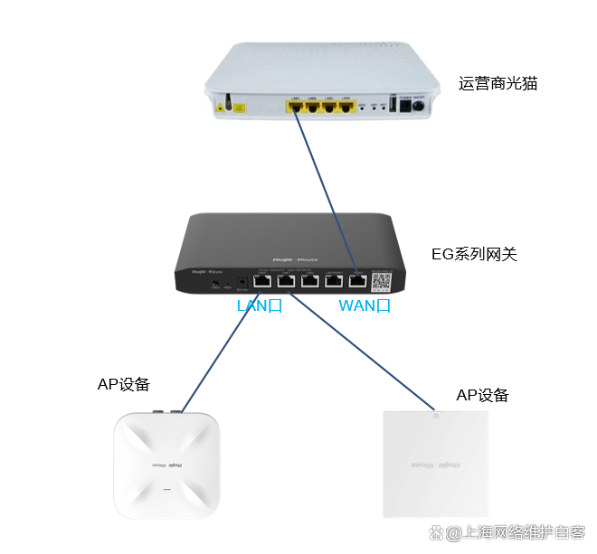 出口的网关使用睿易EG系列,并且内网有EAP设备需要发射无线信号。