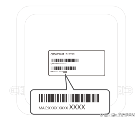 1、 查看EG的背板标签上的MAC后4位数,记住这4位数。EG和EAP组网后,会发出的默认Wi-Fi信号是@Ruijie-mXXXX(MAC后4位),默认没有密码。
