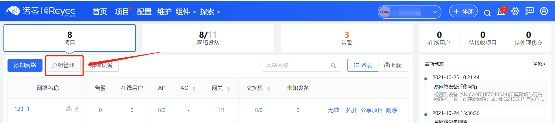 2、点开【首页】,选择“测试项目”点击【不再管理】即可。
